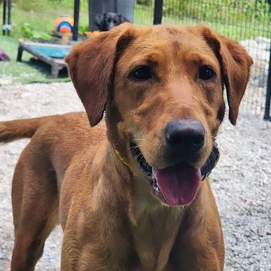 Torch was purchased as a puppy from Black Ice Retrievers and is away currently working on her SH. When she returns, we'll pair her to an excellent yellow/red male for our first yellow/red litter. Torch is a 55 pound fur missile who loves to retrieve and is a natural in the field. She lives to work, train, and please you! Torch has the drive and motor, but dont be mistaken, she still has an off switch in the house, making her the total package. We are excited for this adventure- she also has an amazing pedigree! We are hoping to breed Torch in late 2025.